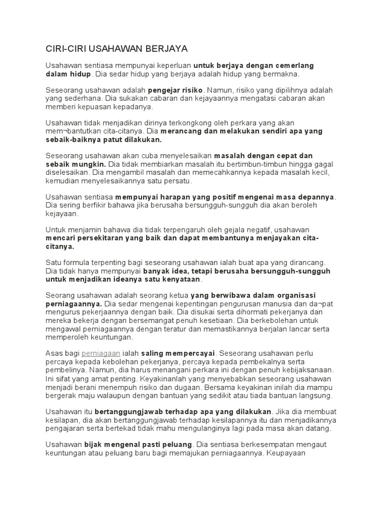 Karangan Ciri Usahawan Berjaya Pdf
